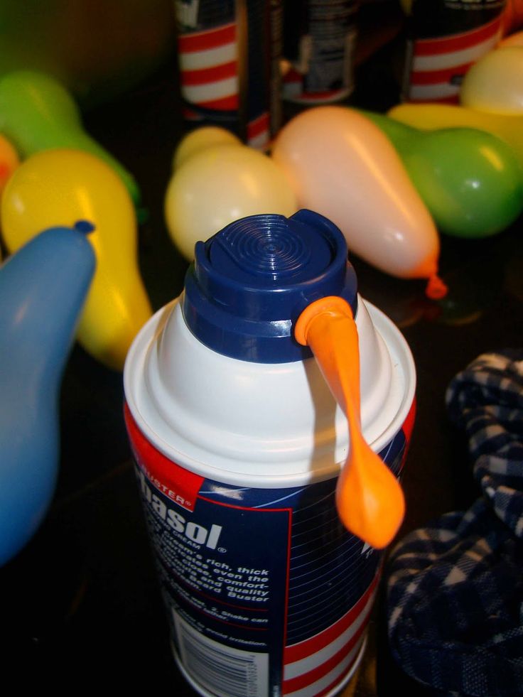 Okay, so we’ve discussed how to fill balloons with mud or paint or soup, which is a lot of fun and useful for tossing games, fights, etc., but there are some other applications that could use some other fun balloon fillings. One such filling is shaving cream. It’s messy and amazing.